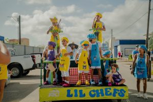 The children shone in their bright colors, and it was great to see them dancing and singing together with their parents and family during the parade. There was also a special appearance by the winner of the Youth Tumba, Melody Franken, who also enjoyed the lively atmosphere in San Nicolas.